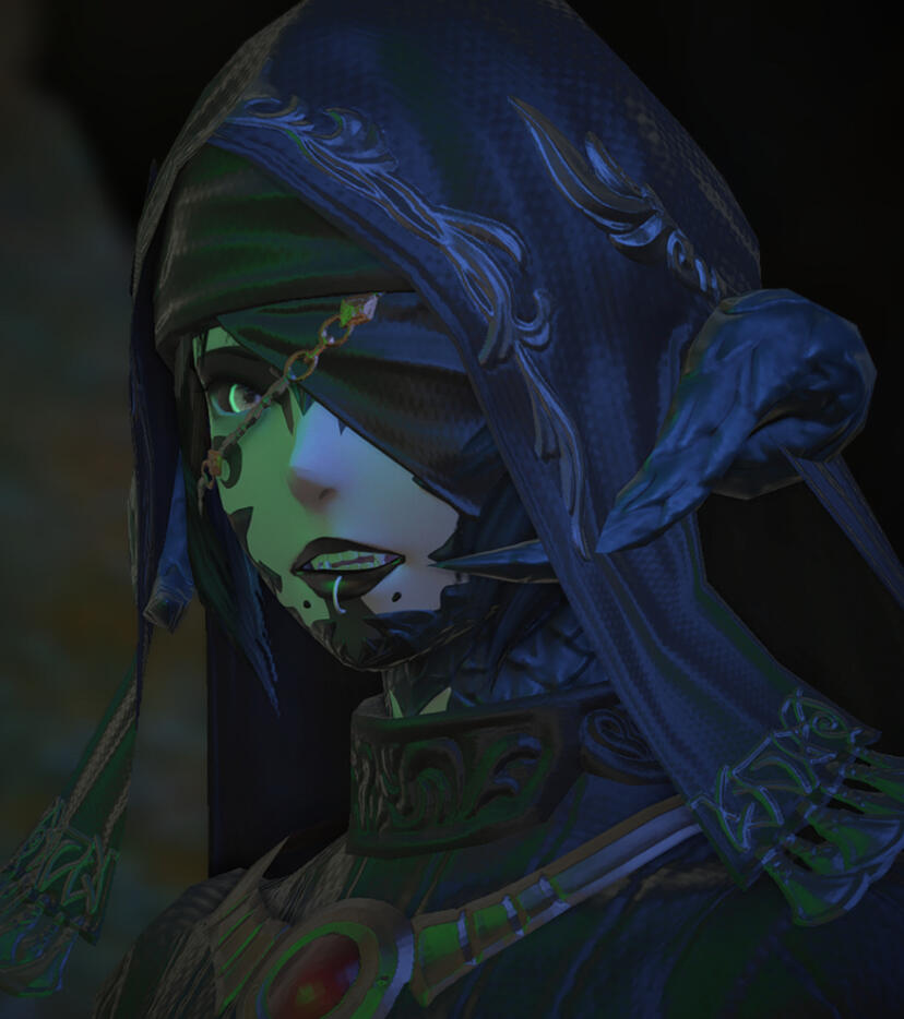 Born to a merchant caste family, Ruhan was recognized at birth as one extremely gifted in the manipulation of aether. Taken from her family as a young child, she was granted the caste of priest and trained by the mystics of her tribe in their holy magics. A naturally rebellious spirit, she was innately drawn towards their far darker arts, the manipulation of life and voidsent, Necromancy.Never truly accepted by those born into the upper castes and shunned by her tutors for her interest in necromancy, Ruhan's only companion was her older sister, who would share stories of her travels to distant lands. When it was discovered that Ruhan's sister had returned from a merchant voyage pregnant with a Hingan man's child, she was put to death for her defiance of their laws.Distraught over the loss of the only person who cared about her, Ruhan took revenge by murdering her tutor and stealing away from the village with her sister's remains. Eventually the necromancer would find her way to Kugane, bitter, alone, hunted by her tribe as well as several steppe nomads, and so she abandoned Othard for Eorzea, where she might be afforded the privacy she so desired to pursue her work.